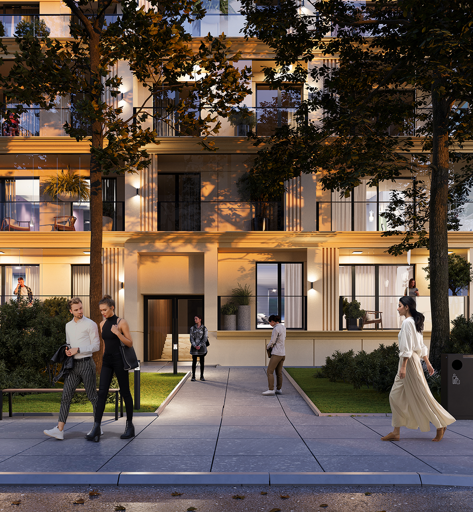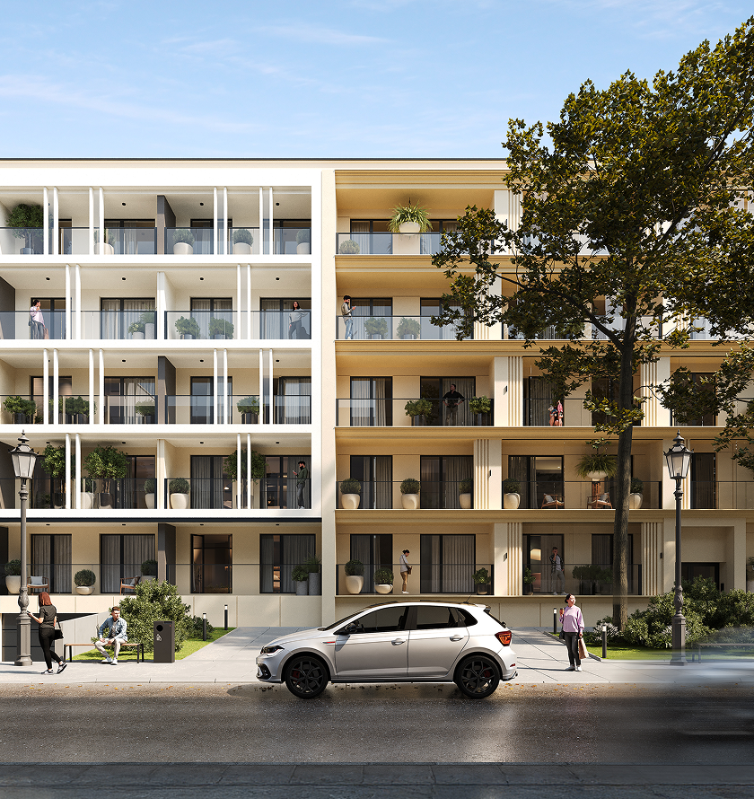 Kater Pallas to architektura, która harmonijnie łączy nowoczesność z charakterem otaczających kamienic. Jasna elewacja, szlachetne detale i rytm przeszkleń sprawiają, że budynek naturalnie wtapia się w tkankę miejską, jednocześnie wyróżniając się elegancją i lekkością formy. To projekt stworzony z szacunkiem dla historii miejsca, a zarazem odpowiedź na potrzeby współczesnych mieszkańców.